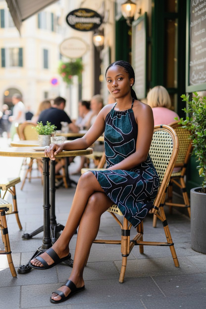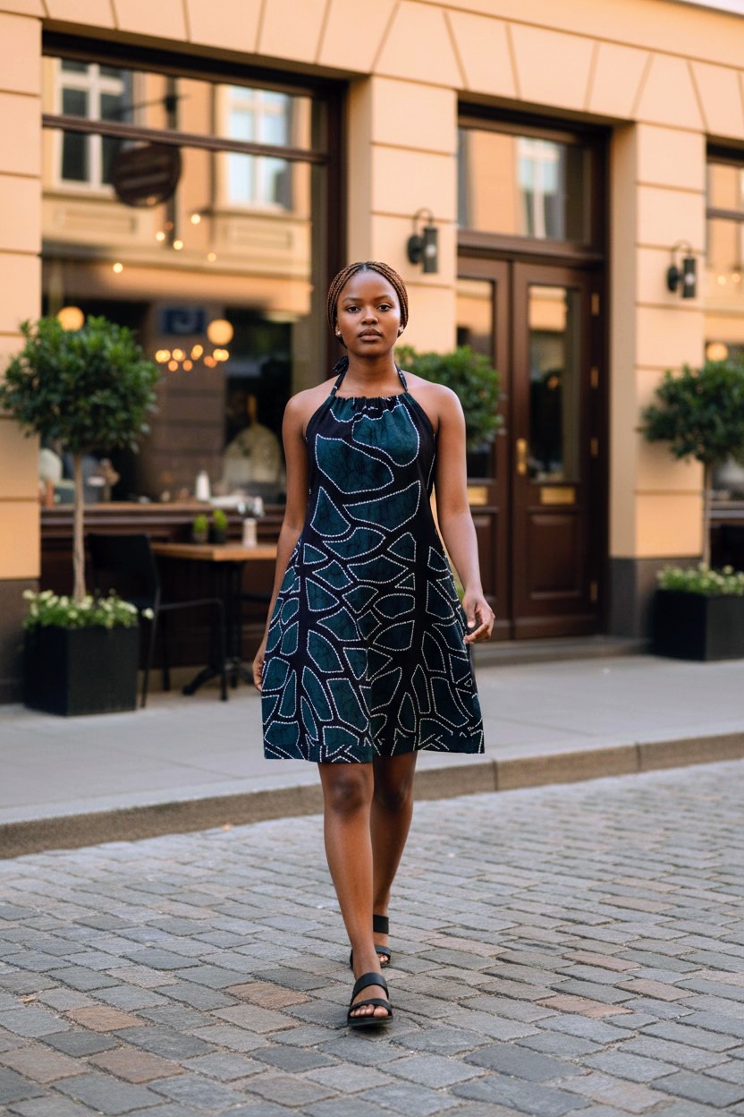 Finn sommar klänning, klänningen är öppen i ryggen med ett resår i midjan.