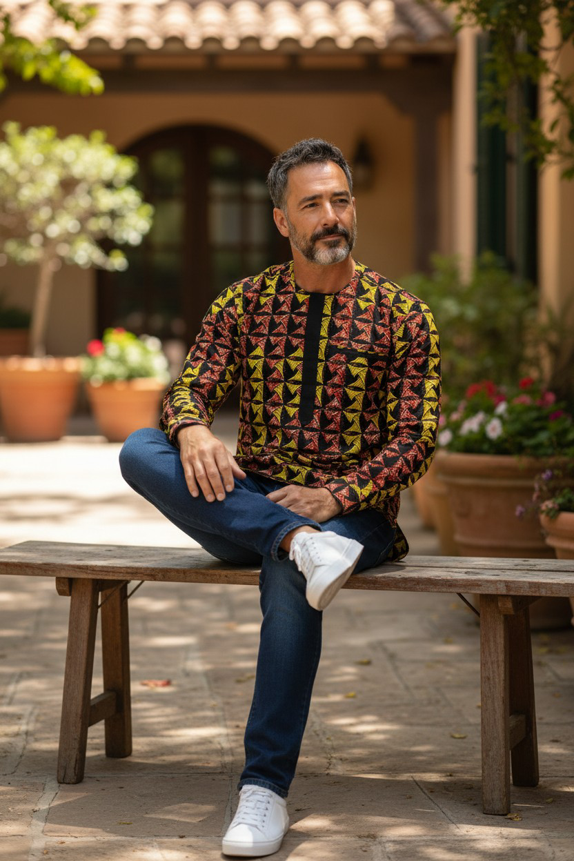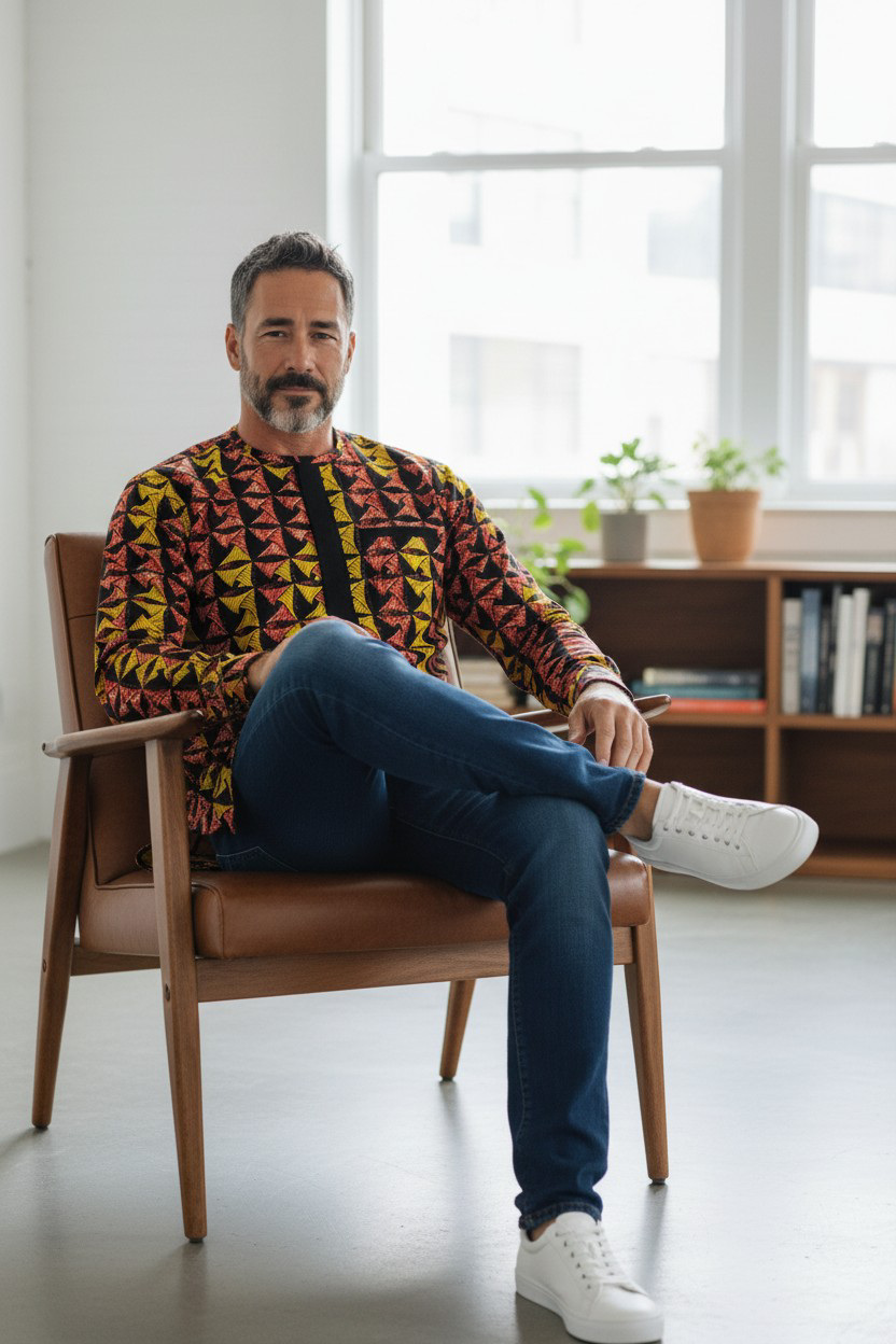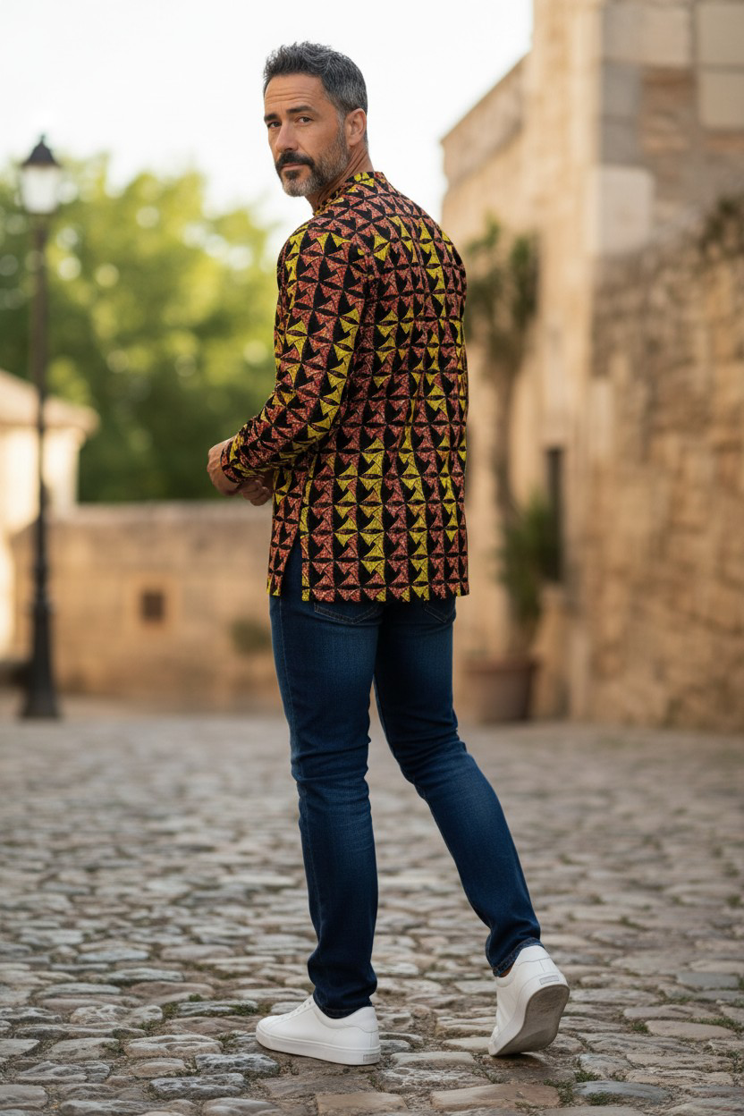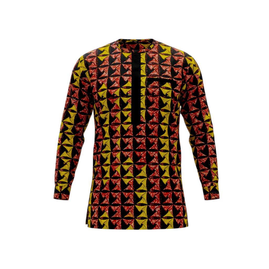 Förhöj din garderob med vår Ankara-bomullsskjorta för män, långärmad med en dragkedja på axeln och rund i halsen med två slitsar på sidan. Denna skjorta kombinerar traditionella afrikanska tryck med en modern design, vilket ger den en unik och elegant look för både vardagliga och formella tillfällen.