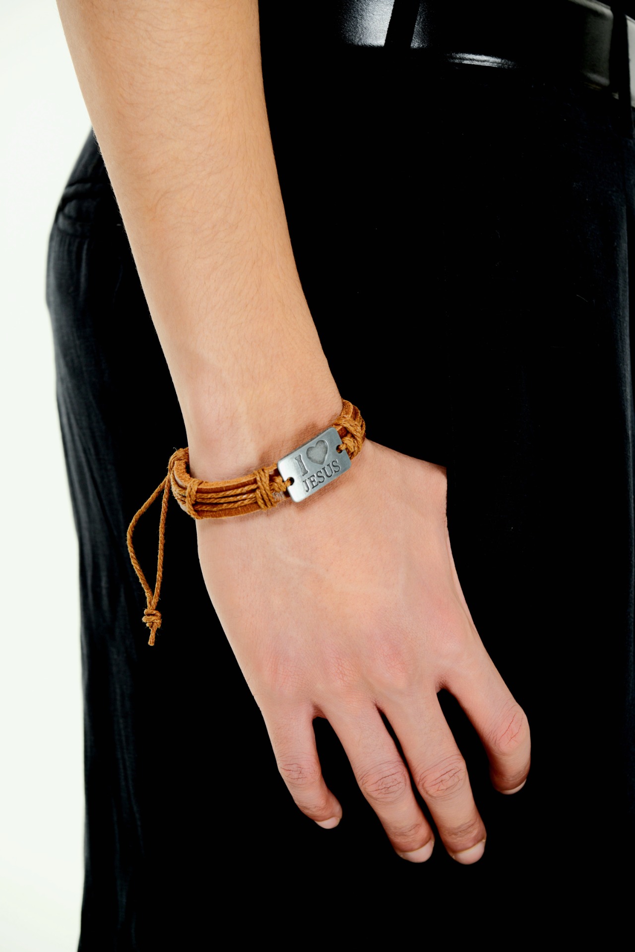 Läder armband, armbandet är gjört av metal och läder. Armbandet är justerbart vilket innebär att det kan passa alla armstorlekar.