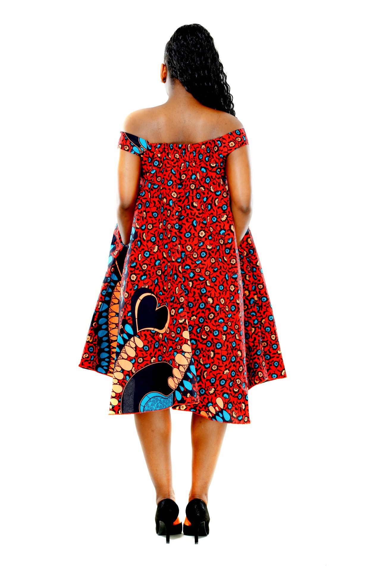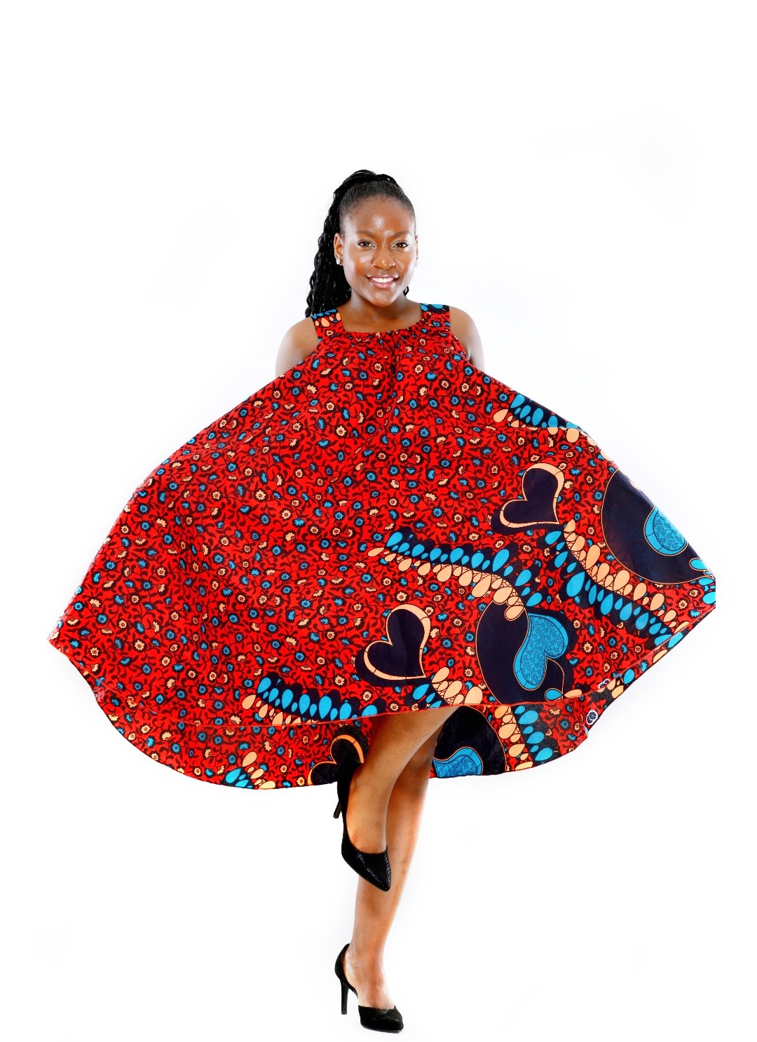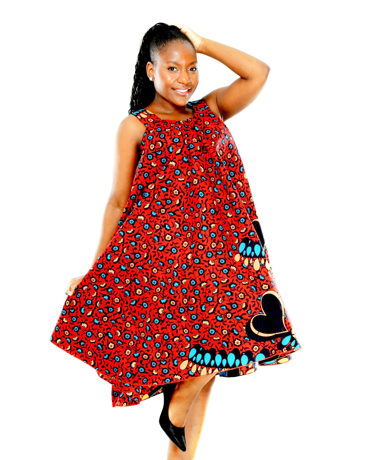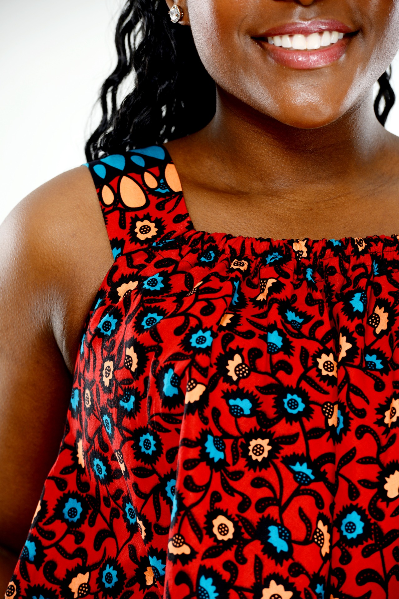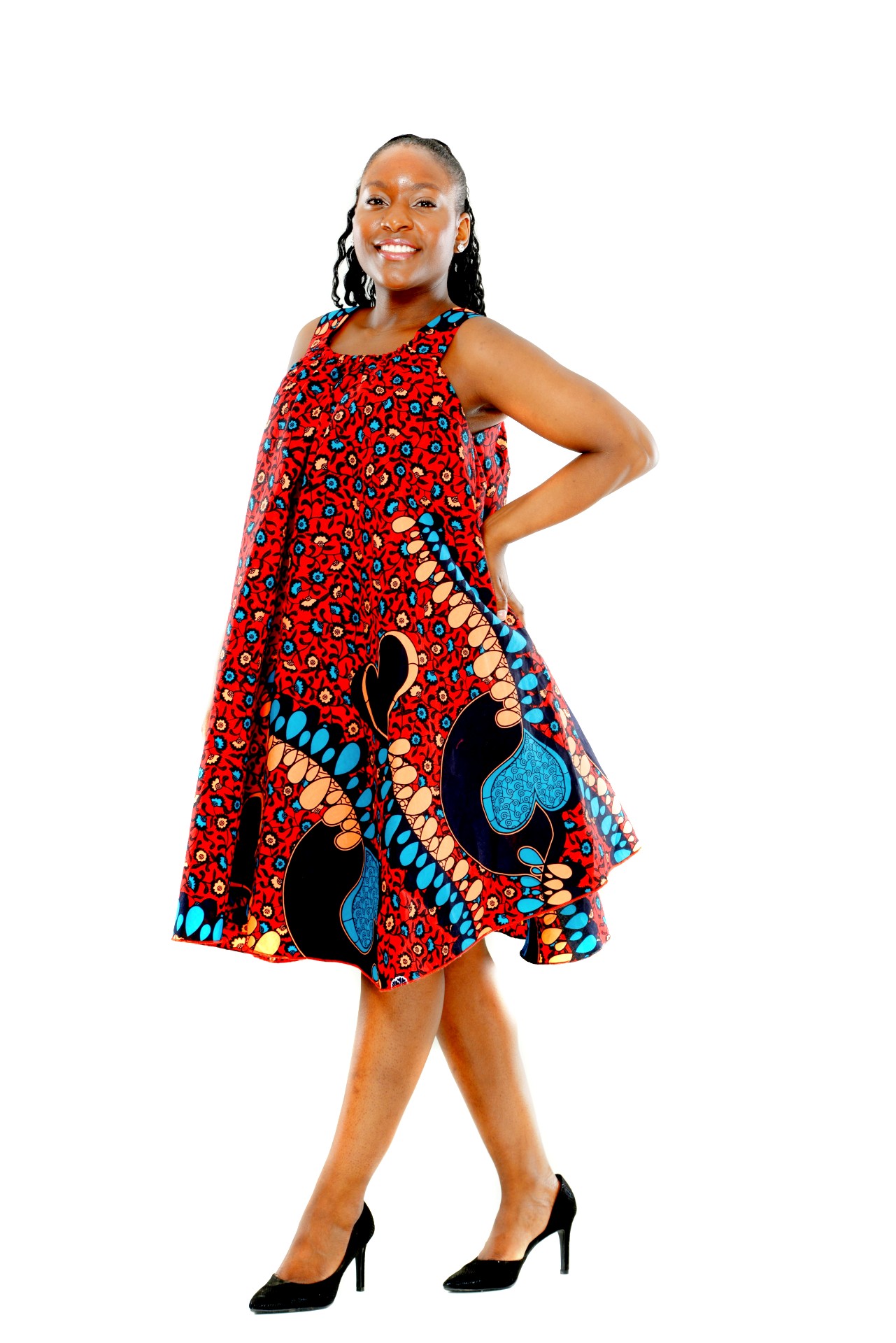 Vacker och blommig armlös afrikansk tryck klänning, Klänningen är runt i form och armlös, perfekt för en fin och soligt dag.