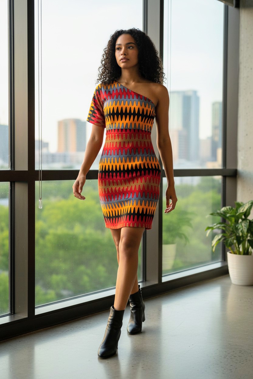 One arm klänning, klänningen har en dragkedja på baksidan och liten slits.